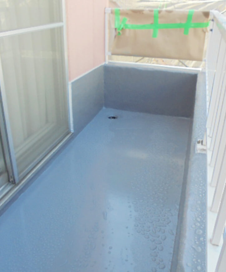 塗膜防水形状を問わず、複雑な場所でも施工することができ、段差が無いのが特徴ですので、歩行する際に違和感がありません。また、費用も安価で済みます。