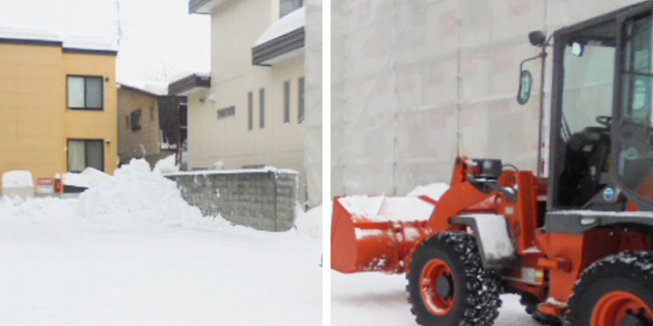 当社では、札幌近郊を中心に営業しているということもあり、冬期間は閑散期になり、自社の職人の雇用を維持するために除排雪を行っております。